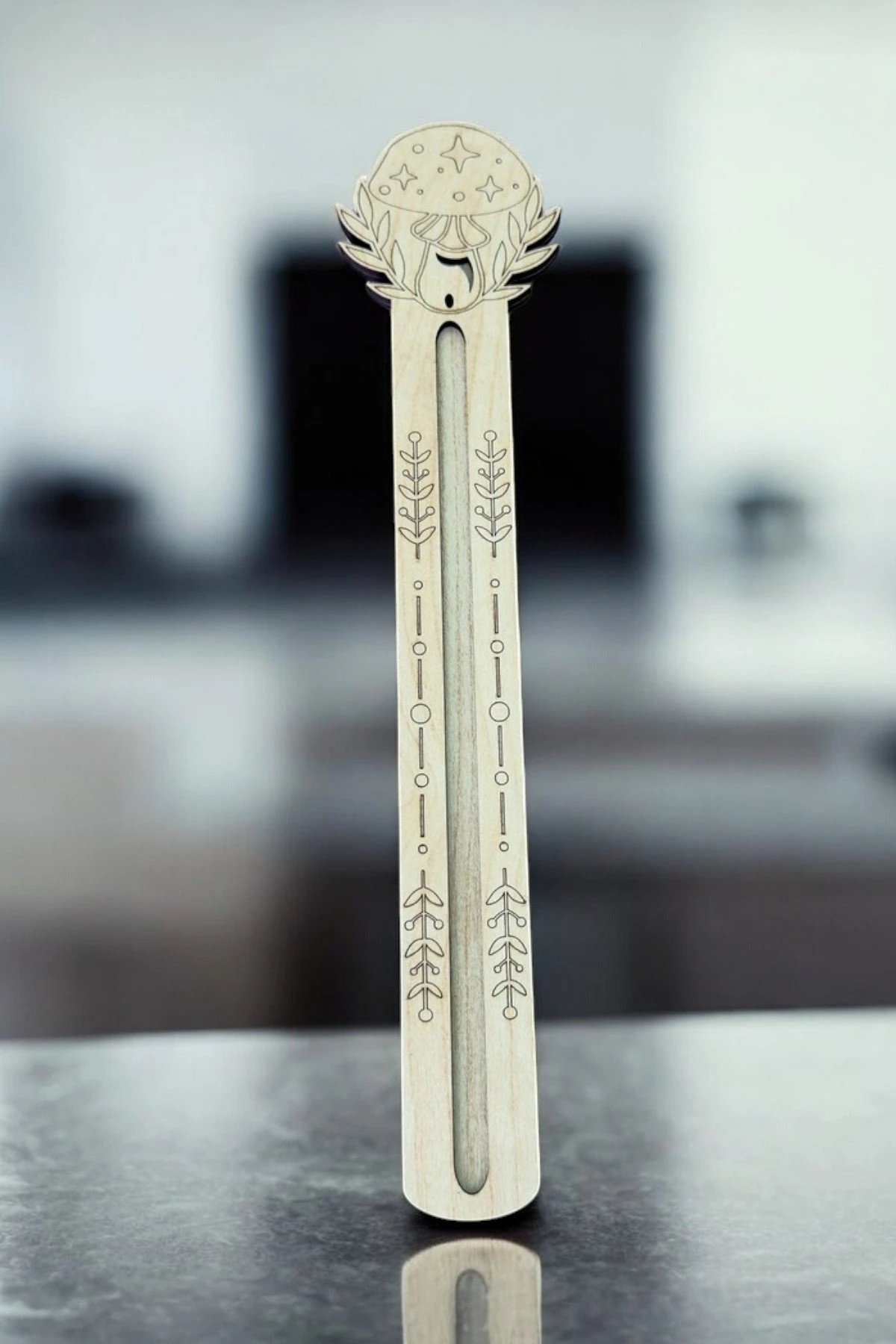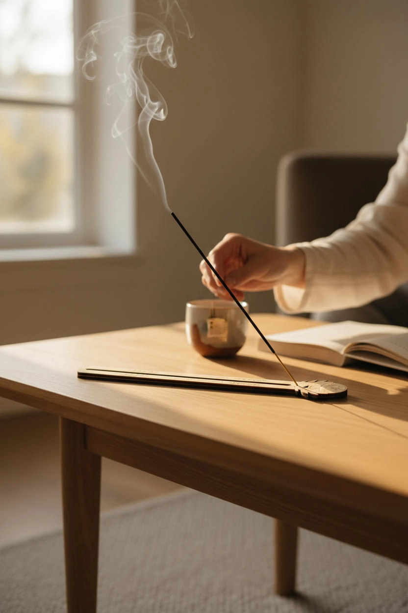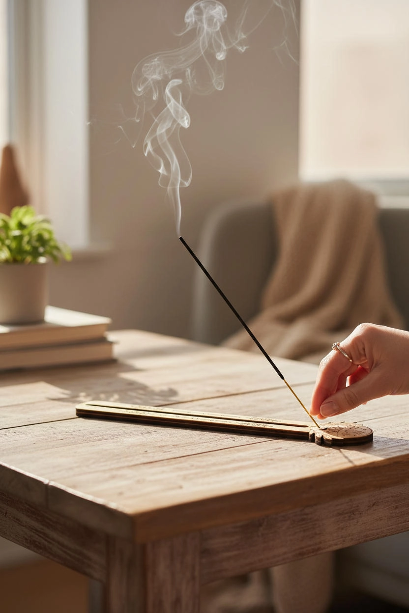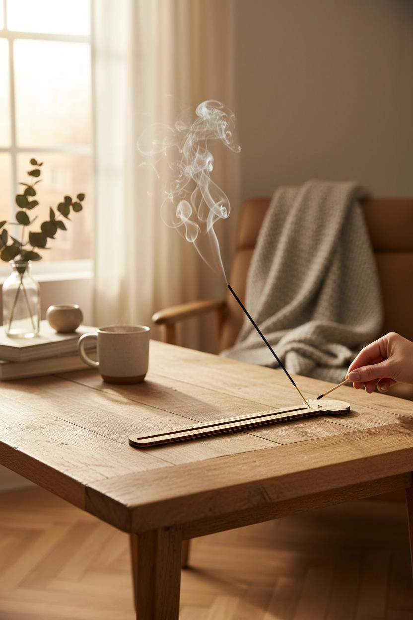 El işçiliğiyle hazırlanmış bu tütsülük, doğal ahşap yüzeyi ve özenli lazer kesim çizgileriyle meditasyon, yoga ve dinlenme anlarınızda size eşlik eder.